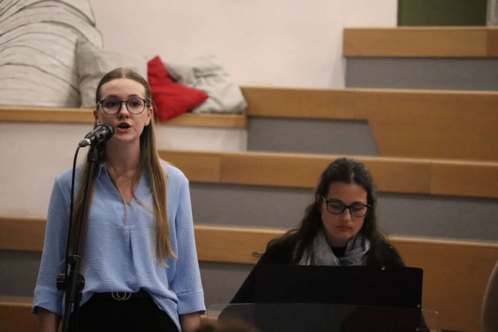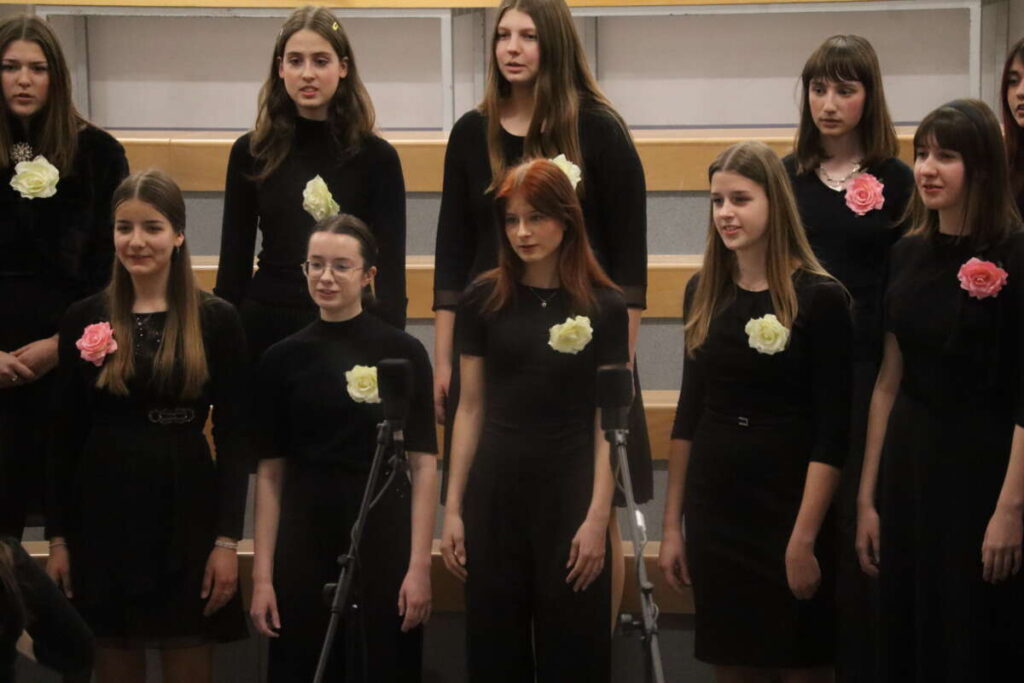 »Dekliški pevski zbor GSŠRM Kamnik pod vodstvom profesorice Daše Kepic že štiri leta s svojimi nastopi navdušuje občinstvo. Dekleta izvajajo raznolike vokalne in vokalno-instrumentalne skladbe ter z veseljem prepevajo ljudske in popularne pesmi. Zbor je za svoje delo prejel številna priznanja in pohvale. Aktivno sodeluje z Občino Kamnik, nastopa na različnih prireditvah ter s svojo glasbo bogati lokalno skupnost. Pevke so se udeležile tudi dobrodelnih dogodkov, kjer so s petjem podprle humanitarne namene,« sta kot prvi zbor večera voditelja predstavila Dekliški pevski zbor GSŠRM Kamnik pod vodstvom Daše Kepic. Pevke so predstavile prekmursko ljudsko Fsì so venci beli, uglasbeno pesem Franceta Prešerna Luna sije in sodobno uspešnico Count on Me.