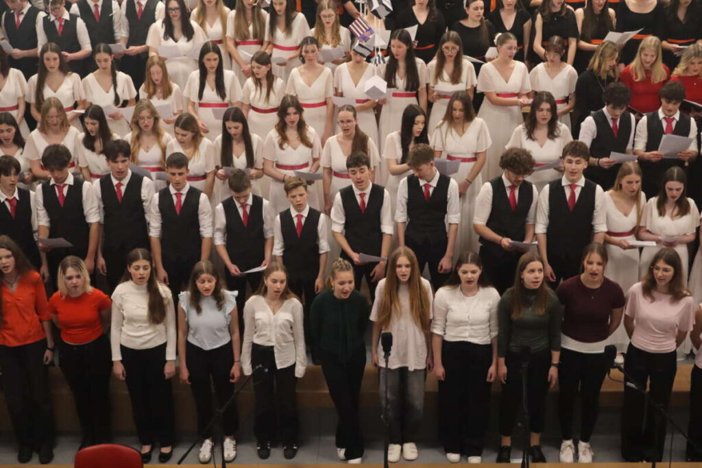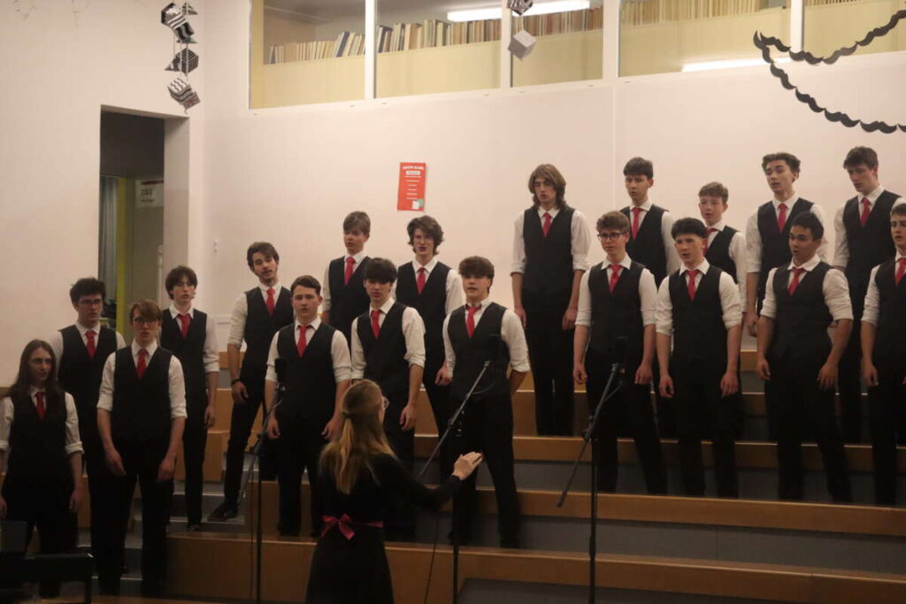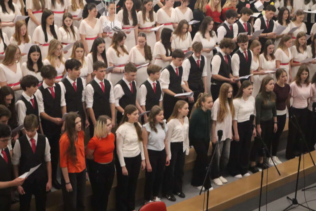 Pozornost je pritegnil tudi Fantovski pevski zbor Gimnazije Kranj, ki pod vodstvom Ane Bec ponovno stopa po poti stare slave. Zasedba se je po večletnem premoru ponovno zbrala v šolskem letu 2023/24 in v rekordno kratkem času dosegla zavidljive rezultate. Že leta 2024 so v belgijskem Neerpeltu osvojili prvo nagrado, uspeh pa so potrdili spomladi 2025 z zlatim priznanjem na tekmovanju v Pulju. Njihov nastop je vključeval zahtevno Elgarjevo 5 part Songs from the Greek Anthology, ljudsko Lepa Anka, in popularno The Lion Sleeps Tonight.