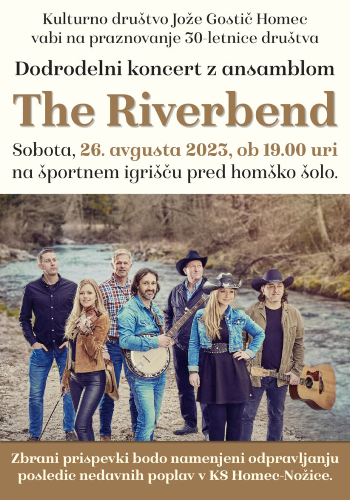 V soboto, ob 19. uri, na igrišču pred staro šolo na Homcu, člani Kulturnega društva Jože Gostič organizirajo Dobrodelni koncert z ansamblom The Riverband.