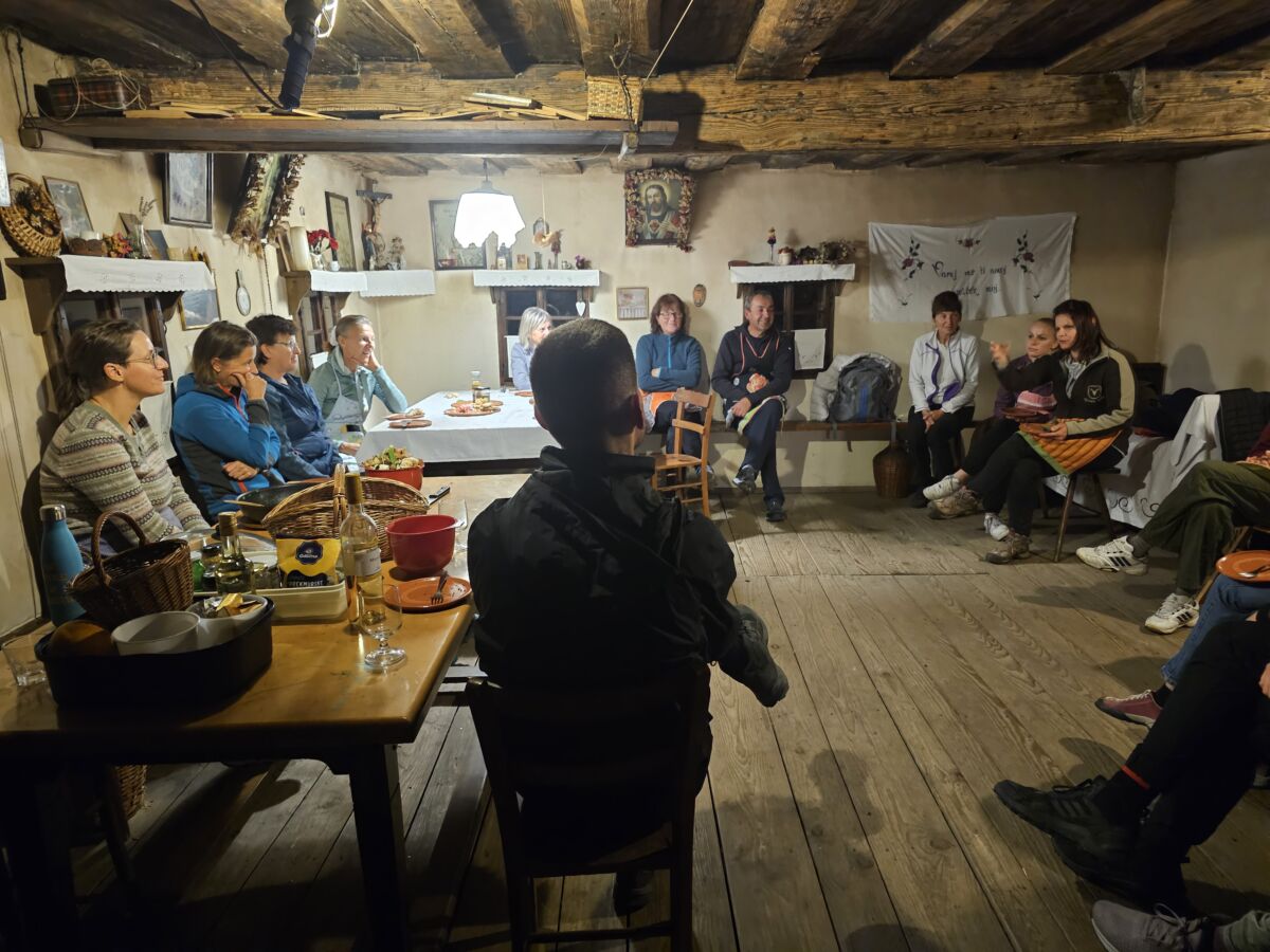 »Tema delavnice so bile jedi iz črne kuhinje. Zgledovali smo se po receptih, starih 100 in 200 let, denimo iz prve kuharske knjige v slovenskem jeziku, Kuharskih Bukev Valentina Vodnika. Na podlagi teh sem izbrala osnovna živila, ki so jih uporabljale že naše babice, recimo ajdo, riž, kašo itd. V teh knjigah je pogosto omenjeno, da so nekdaj šli na vrt in nabrali peteršilj ter vse plevelaste rastline, ki so rastle okoli njega. Temu smo sledili tudi na delavnici. Prvi dan smo nabirali gobe, drugi dan smo kuhali. Gobam, ki smo jih nabrali, smo dodali še divje rastline. Slednje bi morali nabrati okoli domačije, a zaradi dežja to ni bilo mogoče, zato sem na delavnico prinesla divje rastline, ki sem jih sama nabrala že pred tem,« je o dogajanju na delavnici povedala Rebolj in dodala še, da je bila Budnarjeva domačija izbrana načrtno ravno zaradi črne peči, »v peči smo spekli česen, ki smo ga kasneje uporabili za namaz, pogačo s skuto in čemaževim pestom ter ocvrli žveplenega lepoluknjičarja, gobo, ki je fluorescentna, a užitna.«