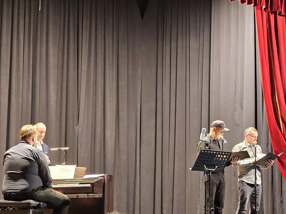 Večer sta s pesmijo popestrila baritonist Anton Habjan in pianist Nikola Varžić. Predstavila sta štiri Prešernove pesmi (Kam, Pevcu, Ukazi in Mornar), venček slovenskih ljudskih (Podoknica, Kaj bi te vprašal, Katrca, Z zakrivljeno palico v roki, Na jezeru bliz’ Triglava) in zabavne Ne prižigaj luči, Zemlja pleše, Ne čakaj na maj ter Moja dežela.