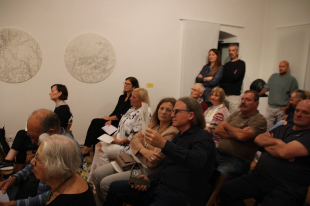 Okoli 15 udeležencev je na dražbi kupovalo slike, fotografije, grafike, keramične umetnine in manjše skulpture. Za nekatera dela so se borili manj, za nekatera več. Prva slika na dražbi je bila grafika Kamničana Mihe Maleša, zasebna donacija, za katero je bila začetna ponudba 130 evrov, a končna cena 300 evrov. Med drugim so bila na voljo tudi dela Aleksija Kobala, Nine Koželj, Nece Falk, Jurija Bizjaka in dveh belgijskih umetnikov, in sicer kiparja Williama Sweetlova in slikarja Philippa Baderta.