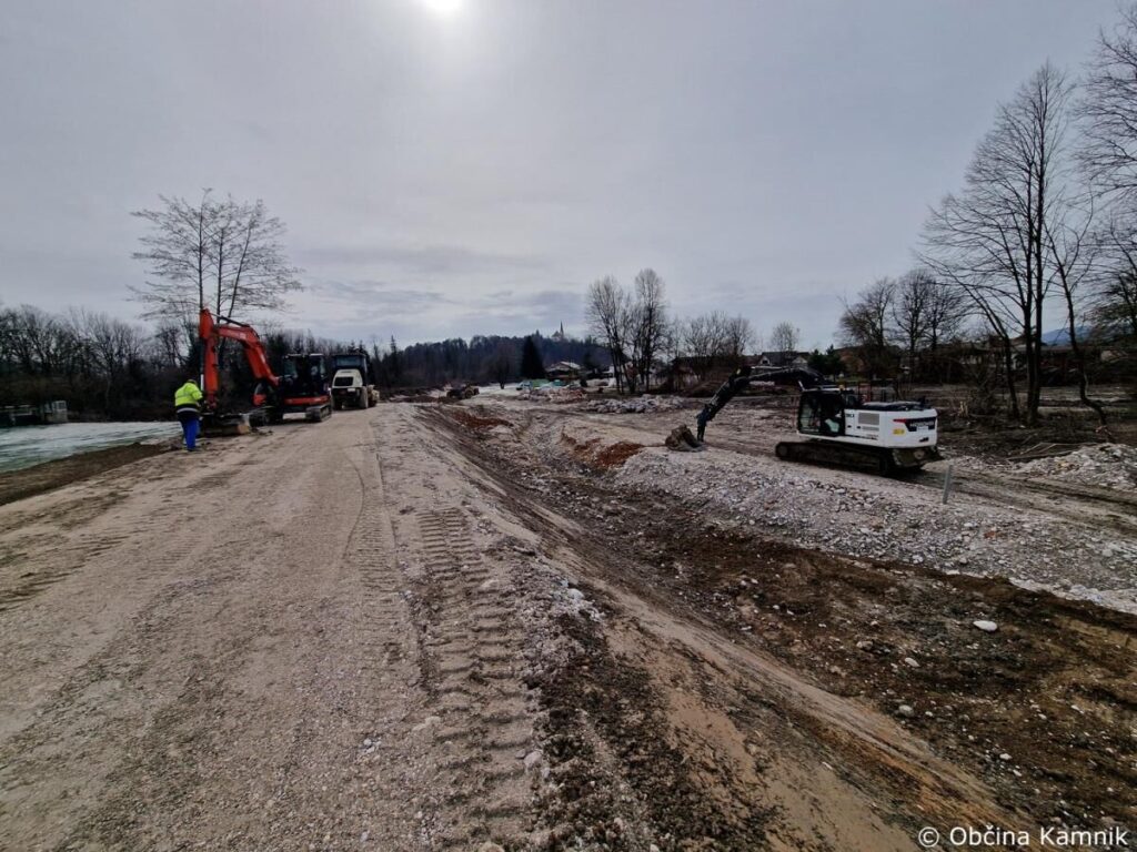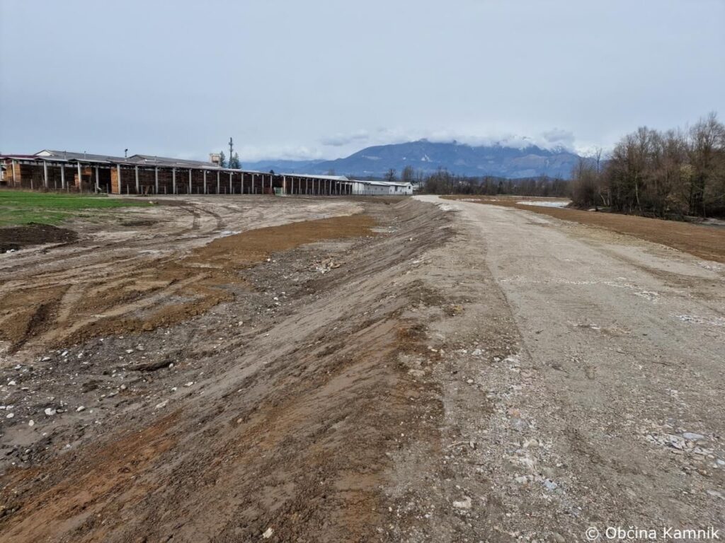 Intervencijski nasip v Šmarci je širok 14 metov, visok 1,5 metra in dolg 300 metrov z izvedenimi brežinami v naklonu 1 : 2,5. Nasip so gradili od septembra 2023 do konca oktobra 2023, zaključna dela, ki so zajemala ureditev brežin struge Kamniške Bistrice in hortikulturno ureditev, so bila končana v februarju 2024. V sredino nasipa so vgradili glineni material (centralno glinasto jedro), ki preprečuje dotok vode preko nasipa. Projektantska ocena stroškov intervencijskega nasipa je znašala 672.179 evrov.