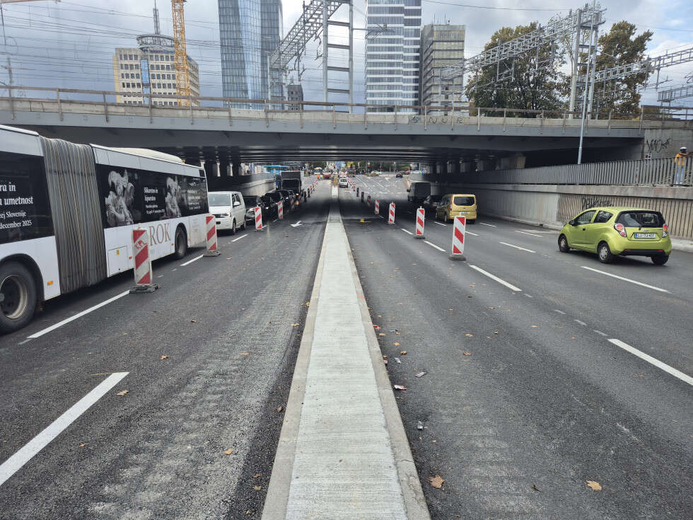 • od petka, 14. novembra, od 7. ure, do nedelje, 16. novembra 2025, do 17. ure: zapora dveh voznih pasov na zahodnem vozišču (v smeri proti centru) in pločnika na zahodni strani,