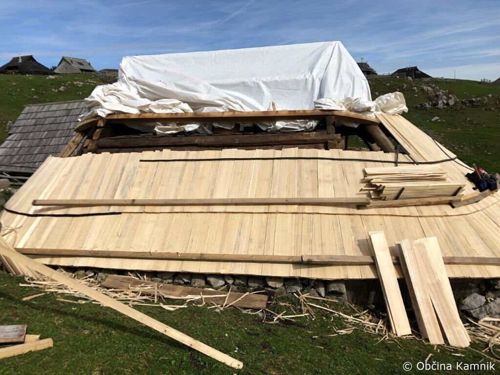 Na Preskarjevi bajti na Veliki planini so lani izvedli sanacijo zidu okrog objekta (suhozid), izvedla so se manjša popravila (zamenjava vhodnih vrat in nekaterih dotrajanih lesenih delov, nove klopi zunaj), letos pa so zamenjali dotrajane skodle na celotni strehi ter popravili najbolj dotrajane lesene elemente na obodu koče.