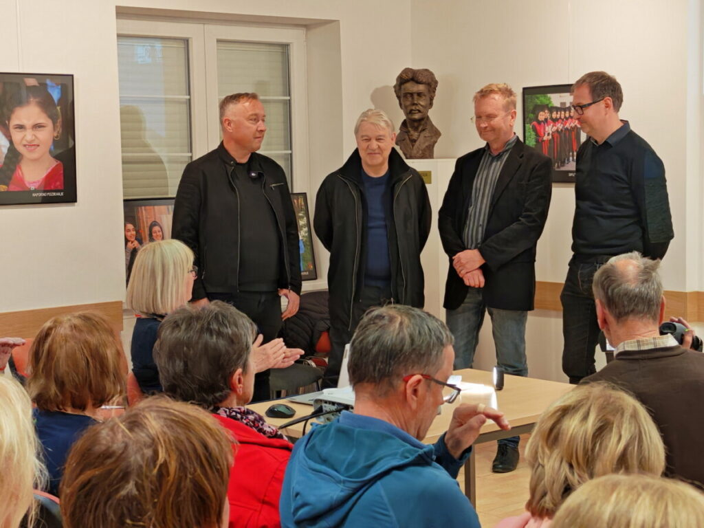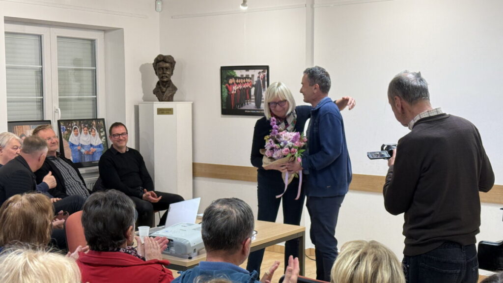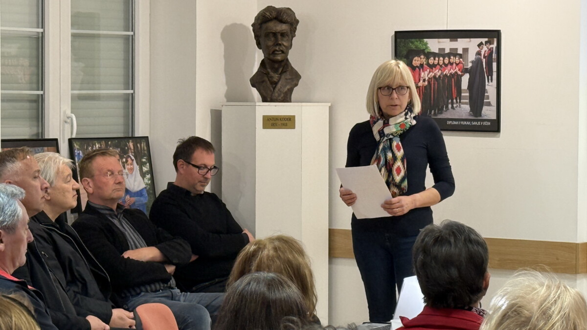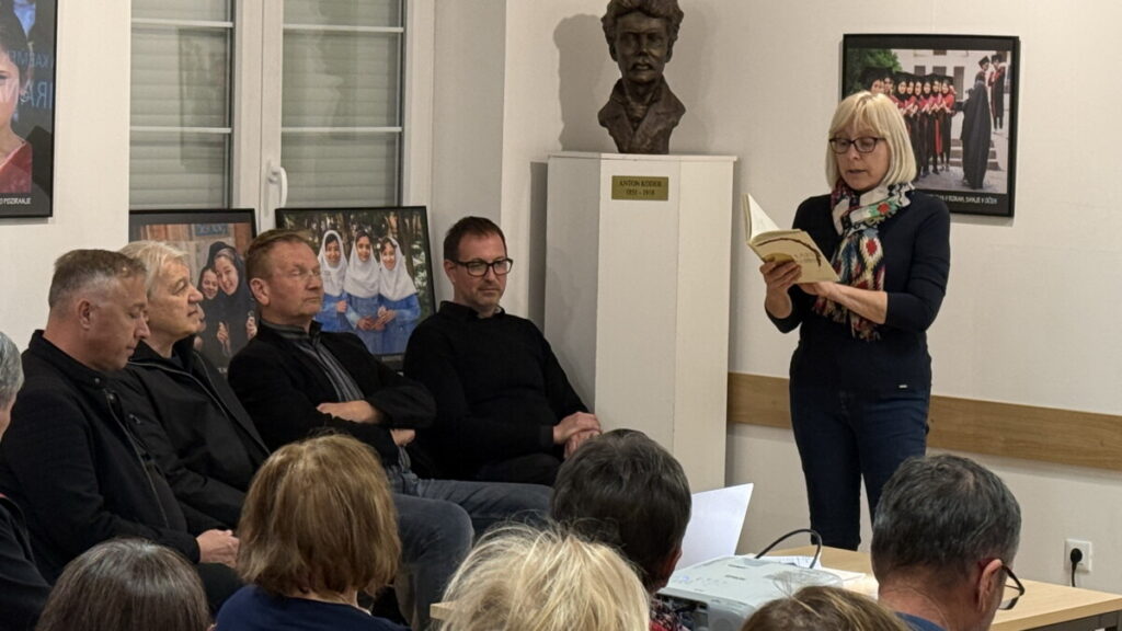 Kulturni program je dopolnil Marjan Potočnik, soprog avtorice, ki je s tremi prijatelji večglasno zapel znani pesmi Pod rožnato planino in Lipa zelenela je.