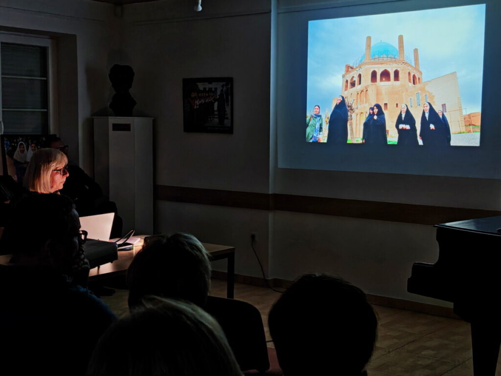V nadaljevanju večera je Karmen Potočnik ob projekciji fotografij vsak posnetek posebej komentirala, dogodek pa je obogatila tudi z branjem pesmi perzijskega pesnika Hafiza iz zbirke Divan. Prisotni so jo nagradili z bučnim aplavzom.