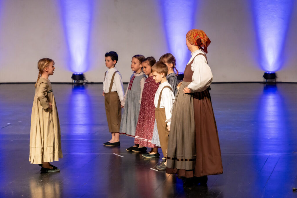 Na podlagi raziskav meščanske in obrtniške oblačilne dediščine otrok, ki so v Kamniku odraščali v prvih treh desetletjih prejšnjega stoletja, je Helena Trobentar oblikovala kostume za Verine zvezdice, ki jih nosijo že dobro desetletje. V Verinih zvezdicah pleše štirideset mlajših in starejših osnovnošolskih otrok. Kot prva od dveh skupin, ki prihajata iz Osnovne šole Marije Vere, je nastopila Mlajša otroška skupina. Osnovnošolci so prikazali svojevrstno plesno-igrano različico otroške igrice Ura je ena, medved še spi.