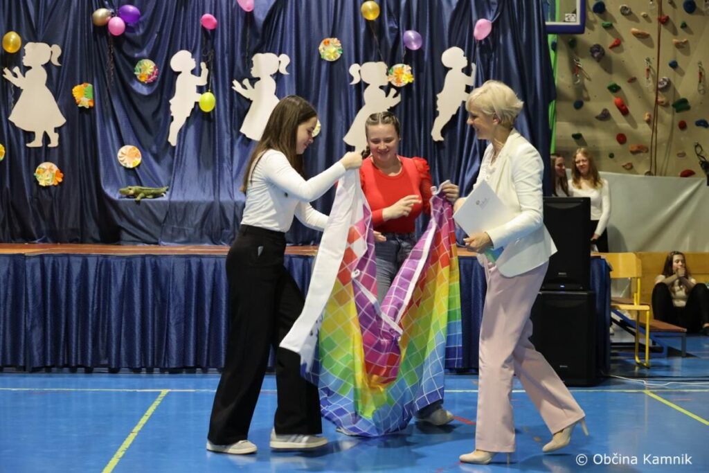 Kulturnik Tone Ftičar je šoli čestital za vnovičen naziv ‘kulturna šola’, podaril jim je zasluženo priznanje in zastavo ter jih povabil, da se s svojo neustavljivo ustvarjalnostjo ‘korajžno’ predstavijo na čim več različnih umetnostnih področjih, ki jih podpira tudi Javni sklad Republike Slovenije za kulturne dejavnosti v Kamniku.