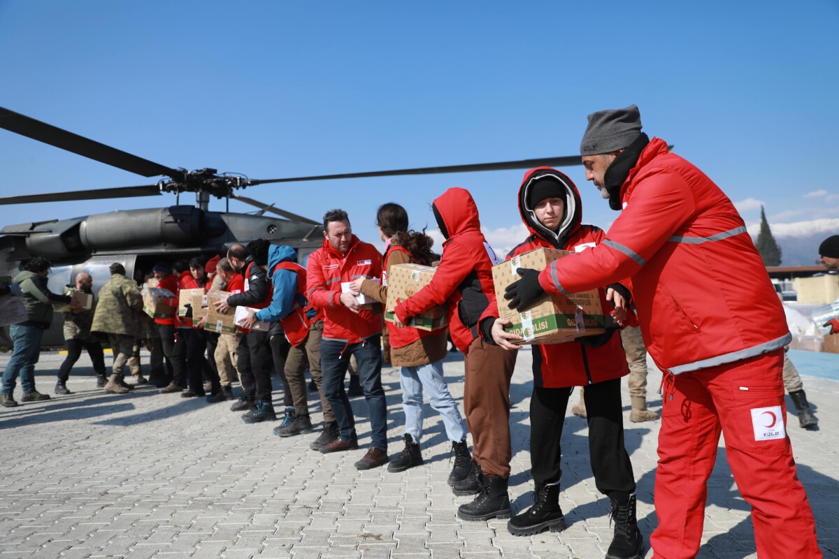 Turško društvo Rdečega polmeseca je nemudoma aktiviralo več kot 5.500 zaposlenih in prostovoljcev, ki v prizadetih pokrajinah s hrano in vodo, osnovno prvo pomočjo, oblačili ter tudi psihosocialno pomočjo pomagajo poškodovanim in tistim, ki so zapustili svoje domove. V tednu dni so razdelili skoraj 25 milijonov toplih obrokov in razdelili več kot 10 milijonov pripravljenih obrokov vsem, ki so varen prostor našli v zavetiščih.