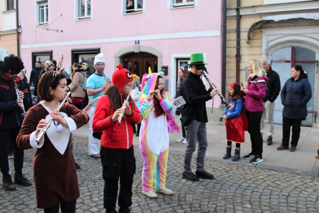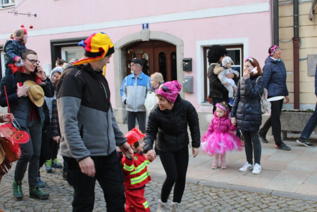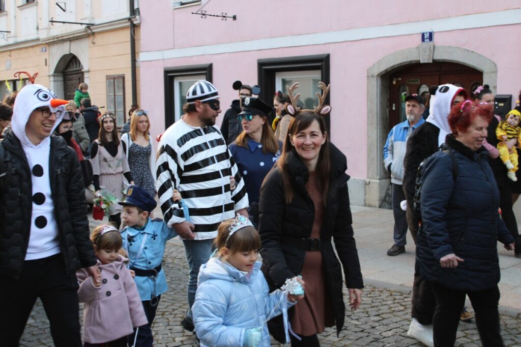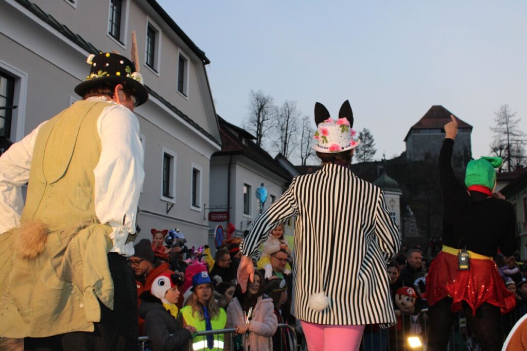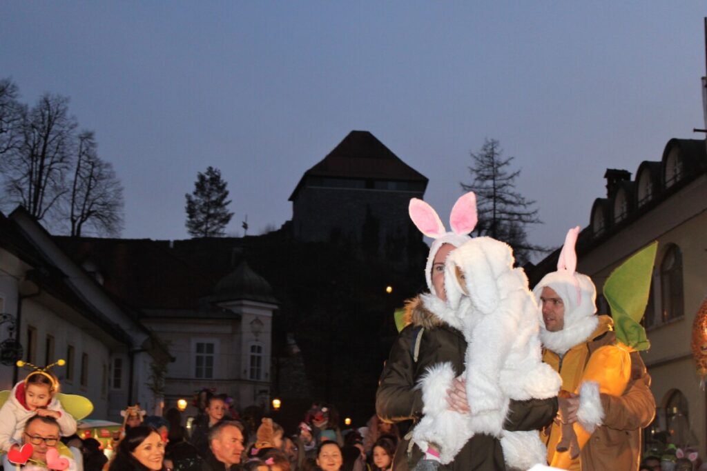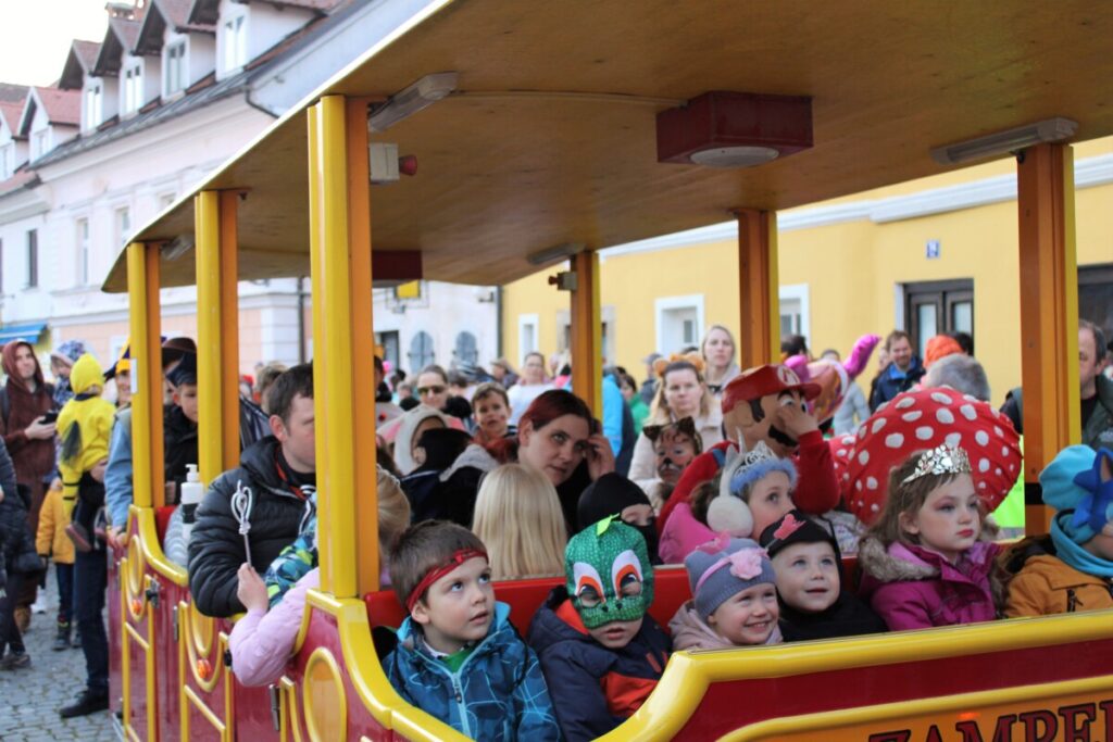 Na čelu povorke, v kateri so sodelovali tako otroci kot tudi njihovi starši, so kamniške mažoretke korakale v taktu Mestne godbe Kamnik, za njimi pa je sopihala stara lokomotiva iz Arboretuma Volčji Potok. Sledila jim je množica bolj in manj našemljenih maškar. Na Glavnem trgu je sledila krajša prireditev, ki sta jo vodila zajec Luka in zajklja Ajda. Ana in Vesna iz Plesnega kluba Šinšin sta pripravili plesno animacijo, s katero sta ogreli občinstvo. Razglasili so tudi najboljše pustne maske. Po glasovih komisije in po aplavzih občinstva je med posamičnimi maskami in dvojicami zmagala maska Wednesday z roko, na stopničkah pa so stali še Astronavt ter skupna maska Slikarke in fotografa. Med skupinskimi maskami so zmagali Avatarji, med najboljšimi pa so bili še Regrati in Štirje letni časi.