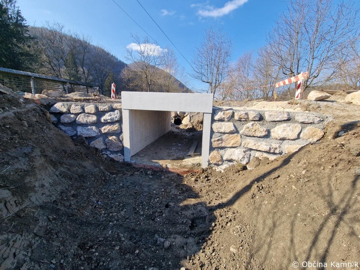 Na občinski cesti v naselju Srednja vas v Kamniku poteka sanacija mostu.