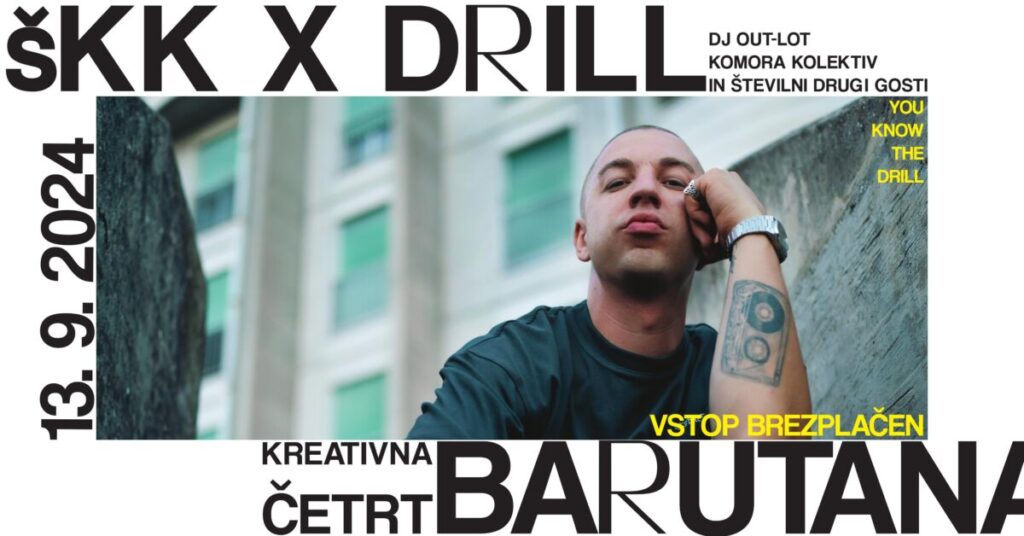 Študentski klub Kamnik vabi vse mlade ljubitelje glasbe na poseben dogodek, ki bo v petek, 13. septembra 2024, ob 18. uri, potekal v Kreativni četrti Barutana. Na odru bo prvič v Kamniku nastopil eden izmed trenutno najbolj vročih ustvarjalcev na slovenski hip hop sceni – Drill.