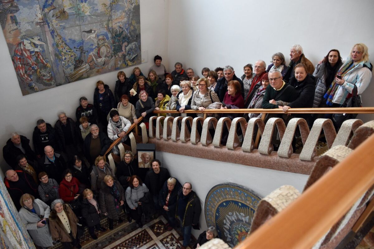 Vožnja nas je vodila proti Italiji. Vmesni postanek za kavico in nadaljujemo proti Spilimbergu, kjer domuje Scuola Mosaicisti del Friuli, šola za mozaiciste, ki je bila ustanovljena leta 1922. Ta velja za najboljšo šolo mozaika v svetovnem merilu. Ko smo prispeli pred šolo, nas je g. Aljaž seznanil s potekom ogleda razstavnih eksponatov in njegovem šolanju in delovanju na ustanovi. Izobrazba na najbolj cenjeni šoli na mozaiciste v Italiji mu je omogočila, da je mozaik spoznal v vsem svojem pomenu. Pripoveduje, da je pridobil ogromno znanja o materialih, zakonitosti tehnike in še in še, da je prišel do samostojne profesionalne kariere. Znanje predaja generacijam na rednih delavnicah.