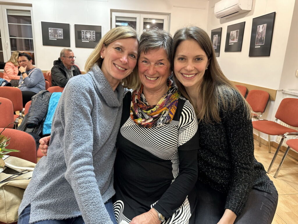V ponedeljek je v Kulturnem domu Radomlje bilo odprtje razstave Po obali, ki so jo pripravile fotografinje iz družine Lomšek, in sicer babica Binca, mamica Eva in vnukinja – hči Neža. Vzdušje na odprtju je bilo čisto pomladno, veselo, sproščeno, nasmejano, razigrano.