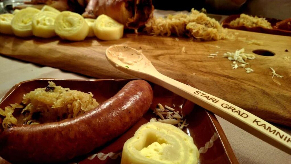 Pethodni srednjeveški meni, ki ga je po avtentičnih zgodovinskih recepturah oblikovala arheologinja Polona Janežič (Obujeni okusi), je navdušil s premišljeno izbiro sestavin in rustikalnimi okusi, ki so obudili duh preteklosti. Za odlično izvedbo in grajsko gostoljubnost sta poskrbela Julia Slapnik in Miha Bric, najemnika Gostišča Stari Grad Kamnik, dogodek pa je s svojimi estetskimi poudarki dopolnila Darja Pirš iz Vratarnice.
