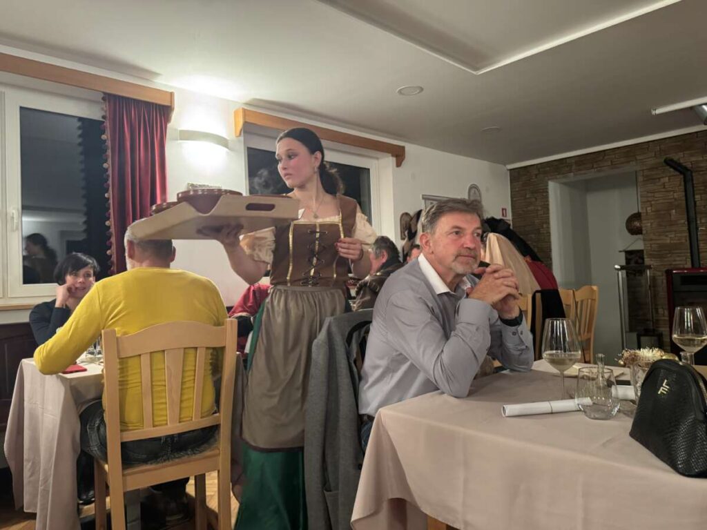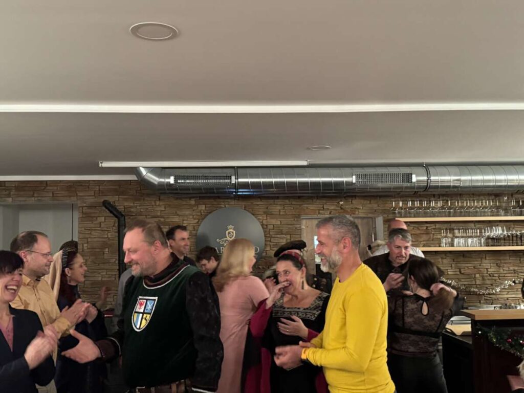 Večer se ni ustavil pri krožnikih. Srednjeveški duh so dopolnjevali plesi, ki so jih prikazali vitezi in princese iz KDIS viteza Gašperja Lambergarja z Bleda in pri katerih gledalci niso ostali le opazovalci – marsikdo se je preizkusil tudi sam. Po glavni jedi se je dogajanje preselilo na grajsko dvorišče, kjer so prikazali viteške boje, predstavitve grbov in ognjeni nastop. Vse skupaj je teklo v umirjenem ritmu, kakršen je bil značilen za takratni čas. V srednjem veku so ljudje manj hiteli kot danes – in tudi večerja je trajala kar dlje, kot smo navajeni.