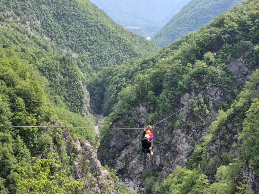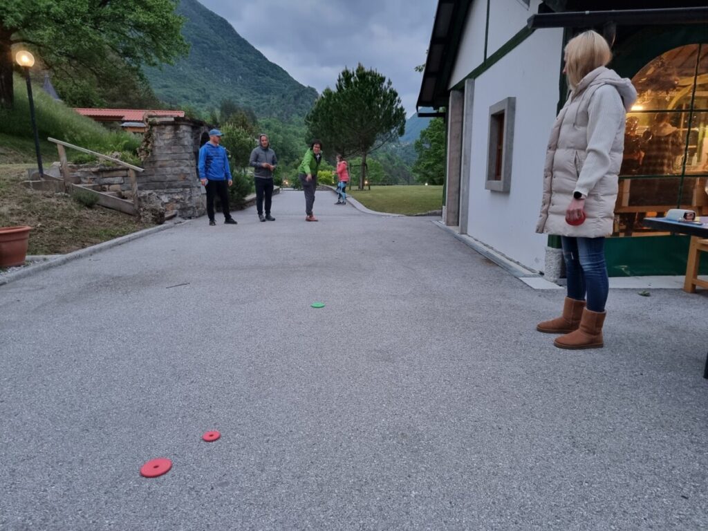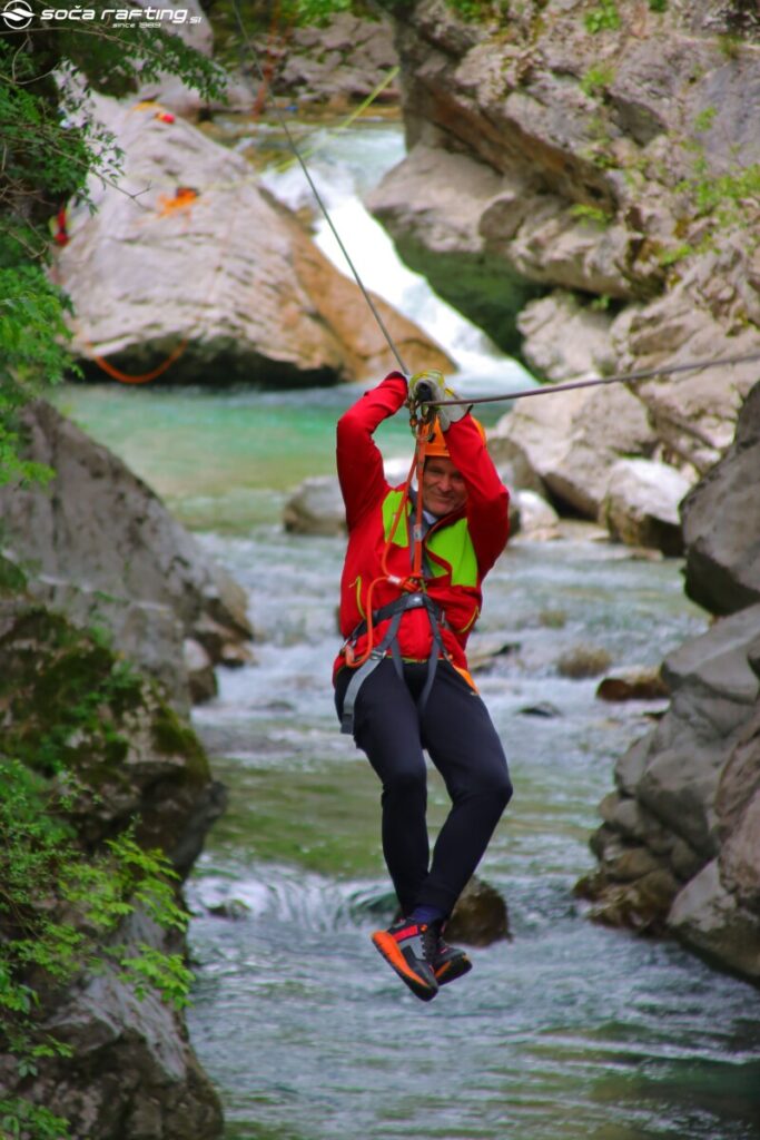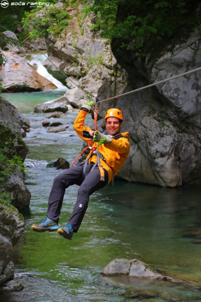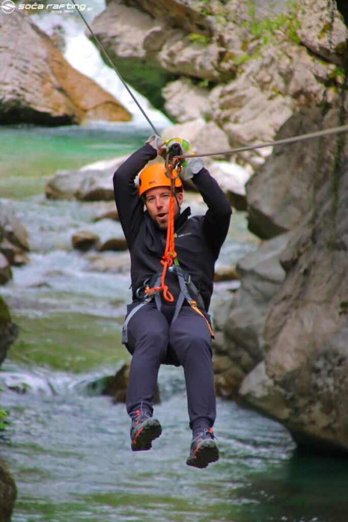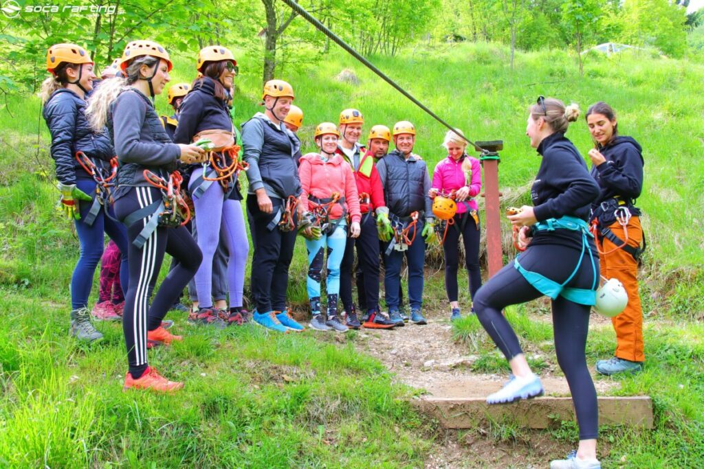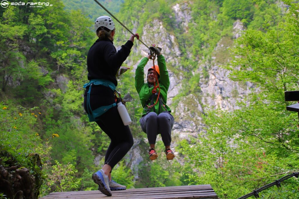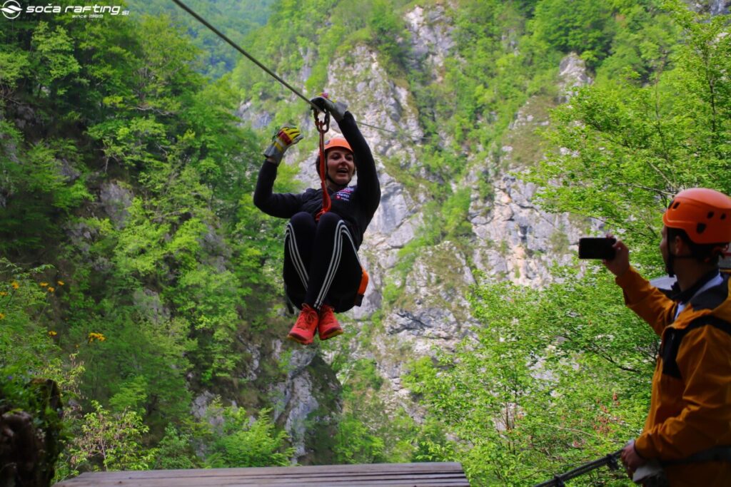 Prva naša aktivnost je bila vožnja z ziplinom po dolini reke Učje, kjer je speljanih kar deset jeklenic. Na začetku so se nekateri izmed nas spraševali, zakaj nam je to treba, ko pa bi vendar še radi živeli. A že po prvi vožnji smo premagali strah in si priznali, da je ta aktivnost resnično prava za nas. Uživali smo na pogledih na čudovito naravo ter v letenju nad sotesko reke. Polni novih vtisov smo se odpravili preizkusit lokalna piva, pice in bovške krape v center Bovca. Prijetno siti smo se odpravili do avtomobilov in se po čudoviti panoramski cesti odpeljali do naše nastanitve, apartmajev Reida v kraju Kneža. Ker smo bili še polni energije, smo se odločili, da preizkusimo balinarske sposobnosti ali pa se odpravimo na sprehod do plaže ob reki Bači. Imeli pa smo tudi obilo časa za pogovore in načrtovanje novih projektov. Zvečer nas je čakala obilna večerja, po kateri smo še malo zaplesali, zapeli in uživali v topli pomladni noči.