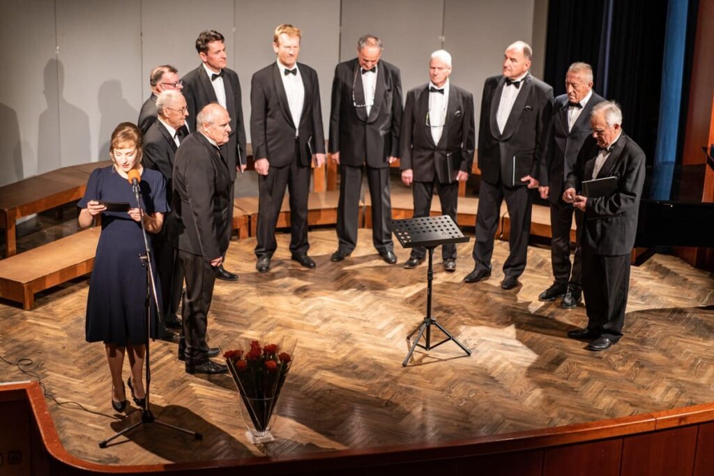 »Kulturno društvo Ivan Hribar Trzin je prepoznano po Ženskem pevskem zboru Trzinke, ki je začel delovati pred desetimi leti, po petih letih pa so medse povabile še moške. Danes se bodo tako prvič predstavili kot Mešani pevski izbor Ivan Hribar in skupaj zapeli skladbo Miroslava Vilharja Na jezeru. Izpod Triglava pa se bodo dekleta kar same odpravile na Stari trg in čez Šuštarski most, saj bodo zapele pesem Ljubljančanke,« je prve nastopajoče, ki pojejo pod vodstvom Primoža Leskovca, predstavila Ajda Sokler. Naslednji so se predstavili pevci Komornega moškega pevskega zbora Lek pod vodstvom Tine Hostnik. Odpeli so nemško skladbo Der Menesch lebt und bestehet, ki jo napisal Hans Georg Nägeli in govori o kratkotrajnosti človeškega obstoja in ljubezensko pesem Dragotina Ketteja Na trgu ter štajersko narodno Za njega vse pretrpi.