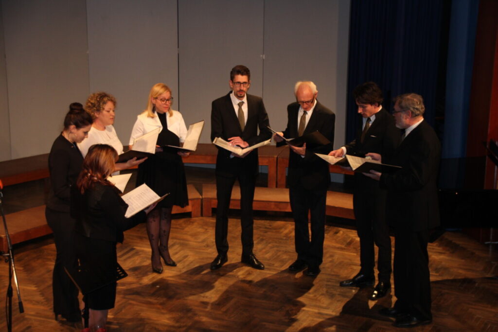 »Drevesa spadajo med ene izmed najpomembnejših motivov Kosovelovih poezij. O borih govori vsaj v dvajsetih pesmi, prepisuje jim raznoliko lastnosti. V pesmi Bori so tako stražarji. Možno je tudi simbolna interpretacija. Poleg te pesmi bo Pevska skupina RŽ izvedla še slovensko ljudsko pesem Kukav’ca in božično pesem Tiha zemlja,« je naslednje nastopajoče predstavila Soklerjeva. Dirigiral jim je Andrej Ropas.