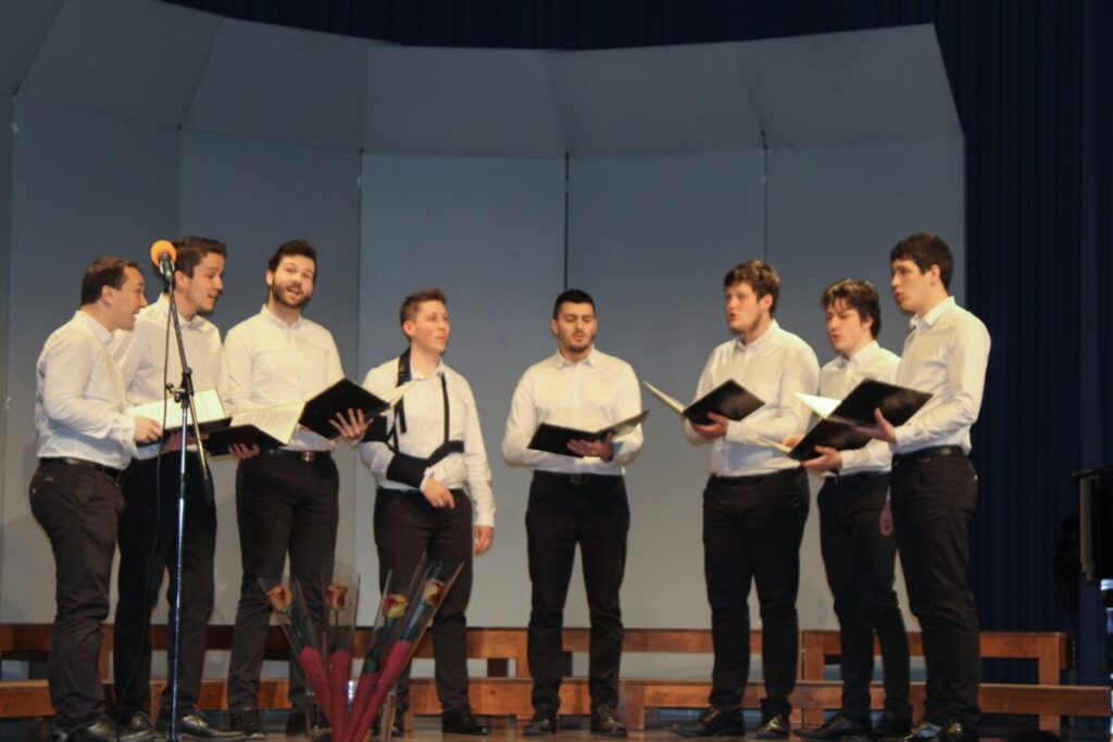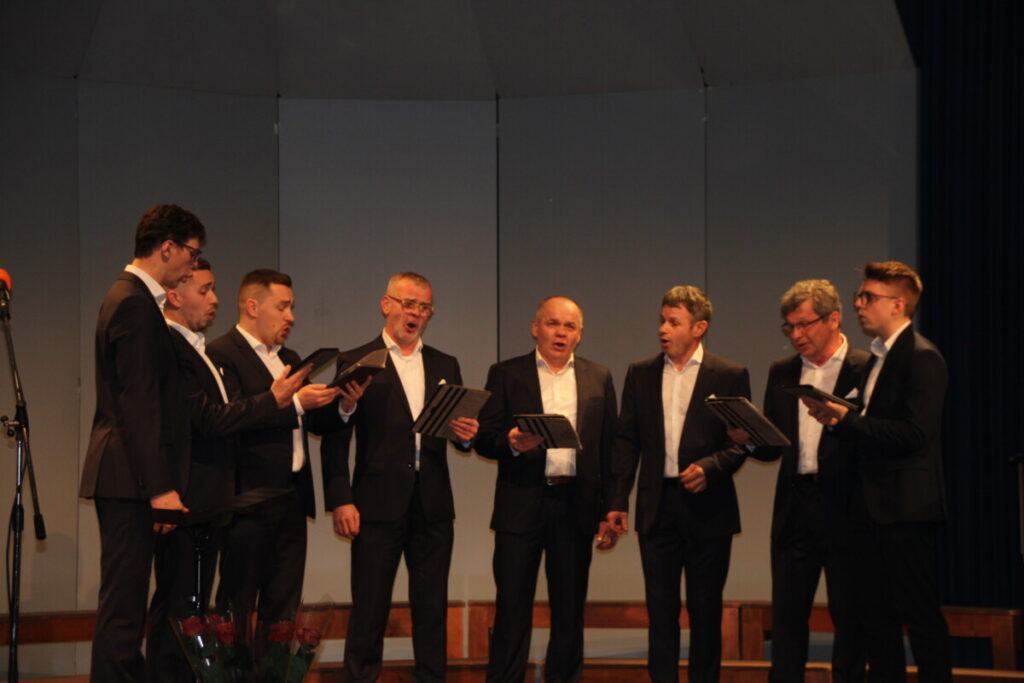 Moški pevski zbor Tine Kos Moravče nosi ime po kiparju Tinetu Kosu. Začetki zbora segajo več kot 70 let nazaj. V sredo so zapeli slovensko ljudsko S triglavskega veter pogorja, Pevec Petra Jereba in O tebi sanjam Pavla Kernjaka. Dirigiral jim je Milan Kokelj.