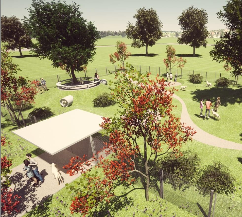 V Občini Domžale trenutno ni prostora, kjer bi bilo psom omogočeno prosto gibanje, ne da bi s tem motili druge prebivalce. Zato je bila sprejeta odločitev, da se uredi pasje igrišče in priskrbi občanom in njihovim psom večji ograjen prostor, kjer se bodo psi lahko brez povodca sprehajali, razgibavali, igrali in divjali. Objekt bo zasnovan v velikosti do 1000 kvadratnih metrov in bo ograjen s panelno ograjo do višine 1,8 metrov. V samem objektu bo urejena krajinska zasnova z nasipom, ki bo vključeval pasji tunel, poglobljenim pasjim amfiteatrom, vohalnim kotičkom, drevesnicami in klopjo. Ob vhodu na pasje igrišče bo senco nudila nadstrešnica.