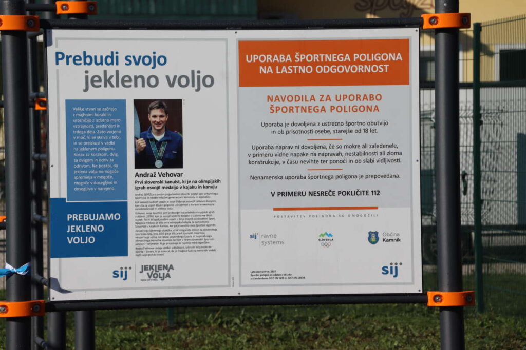 Vsak jekleni poligon ima svojega ambasadorja. V Kamniku je to domačin Andraž Vehovar, dobitnik srebrne medalje na olimpijskih igrah leta 1996 v Atlanti, ki je svoje športne uspehe dosegel z izjemno vztrajnostjo. »Pomembno je, da znaš vstati, ko padeš, kar te naredi močnejšega in boljšega. Ne smemo se nehati gibati, saj je gibanje življenje,« je položil na srce vsem prisotnim Vehovar, ki se vsak dan ukvarja s športom, ljubezen do gibanja pa je prenesel tudi na svoje otroke.