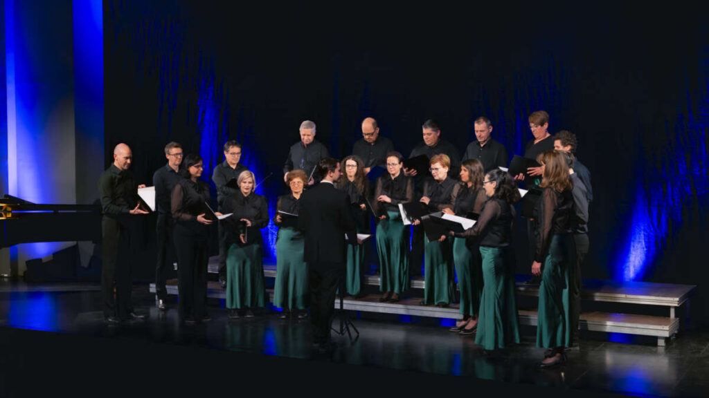 Kot prvi je nastopil Komorni pevski zbor Šutna iz Kamnika, ustanovljen leta 1997. Pevci in pevke od ustanovitve dalje tako rekoč vsako leto v decembru pripravljajo revijo Bodi nam, pozdravljena, na kateri prepevajo skupaj z vabljenimi zbori iz Slovenije in zamejstva. Zapeli so rožansko ljudsko Da be biva liepa vura, skladbo Alleluia Domenica Scarlattija ter Avsenikovo Gozdovi v mesečini (besedilo: Elza Budau). Nastopili so pod dirigentsko palico Andreja Missona, spremljal pa jih je Dušan Ješelnik.