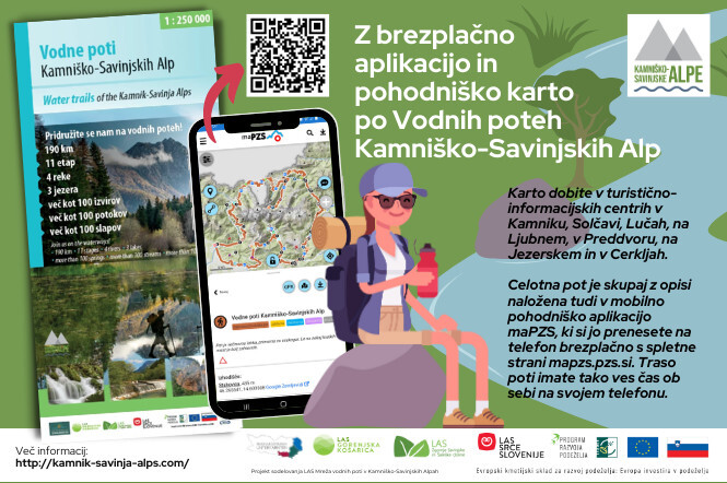 Projekt Mreža vodnih poti v Kamniško-Savinjskih Alpah je plod sodelovanja LAS Srce Slovenije, LAS Gorenjska košarica, LAS Zgornje Savinjske in Šaleške doline in LAG Süd Kärnten in ga sofinancirata Evropska unija iz Evropskega kmetijskega sklada za razvoj podeželja in Republika Slovenija v okviru Programa razvoja podeželja RS 2014–2020.