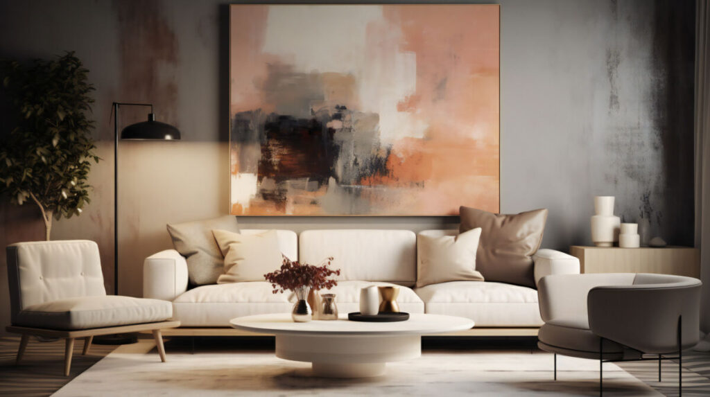 skoraj beli odtenki: Soba z “umazano” belo barvo, z rjavim, bež in kremnim podtonom v kombinaciji z marelično barvo ustvarja svež in brezčasen ambient.