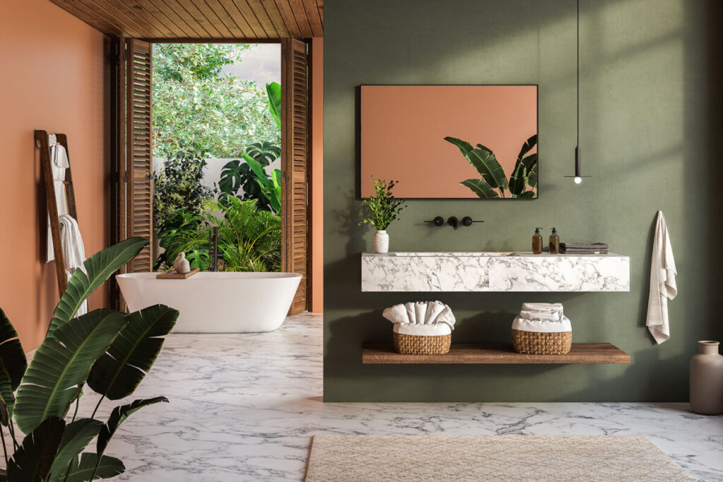 modra in zelena: Marelična v kombinaciji z mornarsko modrimi ali zelenimi elementi ustvarja čudovit kontrast med svetlobo in temo, kar pritegne pozornost v vsakem prostoru, hkrati pa ustvarja globino.
