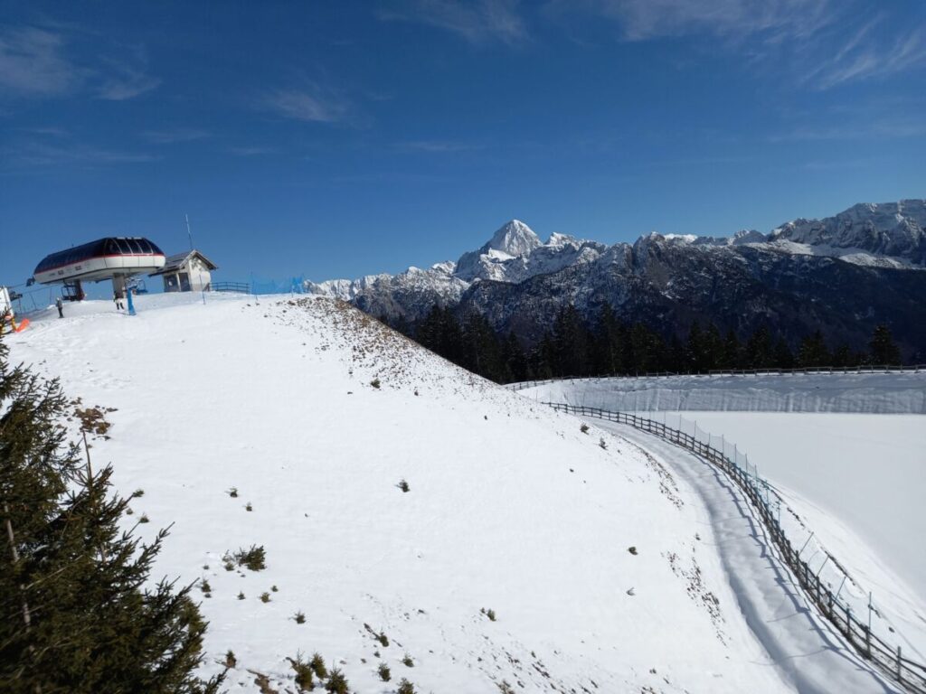 Ko se s kabinsko žičnico pripeljete na sam vrh smučišča, se vam ob jasnem vremenu ponudijo veličastni pogledi na vas Svete Višarje in na okoliške vrhove. Sama proga, ki je speljana z najvišje točke na smučišču proti vznožju, je namenjena za bolj izkušene smučarje, saj je označena s črno barvo. Začetnikom svetujemo, da avto parkirajo na vzhodnem delu smučišča, ki se nahaja v neposredni bližini mesta Trbiž. Od tam so lažje proge zelo hitro dostopne. Poudariti moramo, da sta zahodni del (proga s Sv. Višarij) in vzhodni del (nad Trbižem) povezana s povezovalno progo, ki je dobro označena na zemljevidu smučišča.