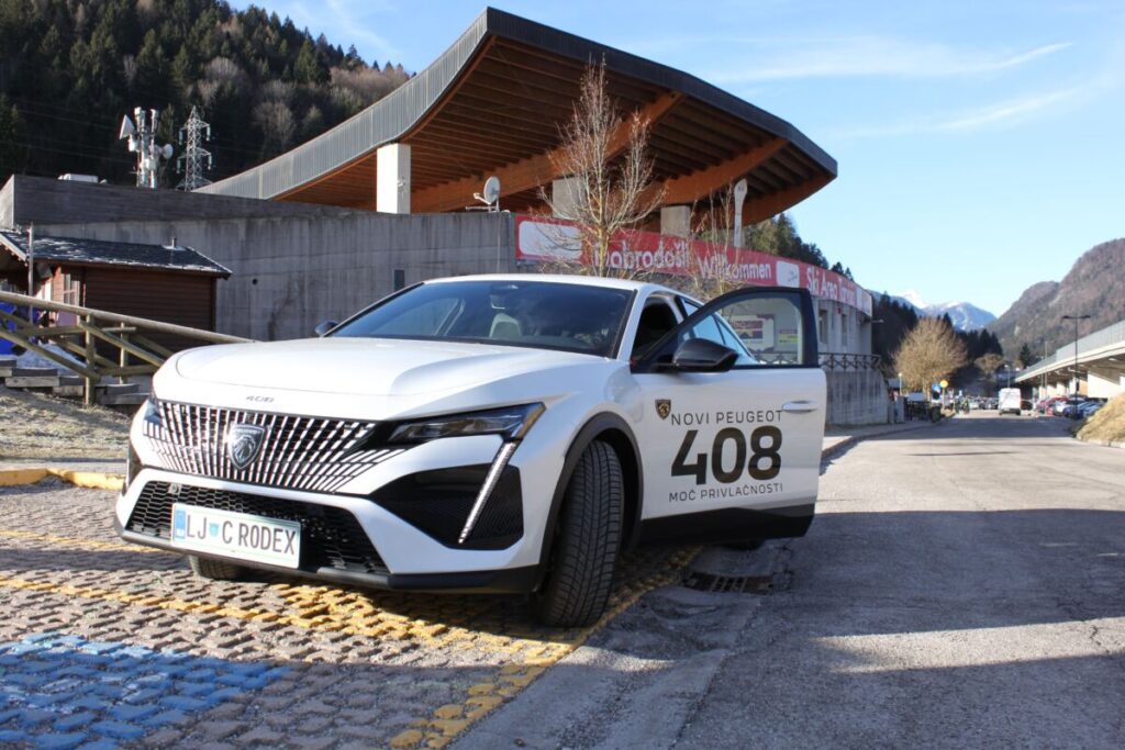 Na smučišče smo se pripeljali z vozilom Peugeot 408, ki nas je navdušilo s svojo prostornostjo in dinamično vožnjo. Izposojo so nam omogočili v avtocentru RODEX iz Radomelj. Model 408 ponuja tudi široko paleto dodatne opreme, pri kateri bi radi izpostavili odličen avtomatski menjalnik, raznorazne sisteme za pomoč pri vožnji in parkiranju. Za zanesljivega se je izkazal tudi navigacijski sistem, ki nas je varno vodil do smučišča Trbiž. Pohvalil bi zelo prostoren prtljažni prostor, kjer lahko brez težav prevažate smučarsko opremo in smuči. Navdušili so nas tudi radarski tempomat, sistem za ohranjanje voznega pasu in sistem za avtomatsko menjavanje dolge in kratke osvetlitve cestišča. Vozilo je izredno tiho in udobno tudi na luknjastem cestišču.