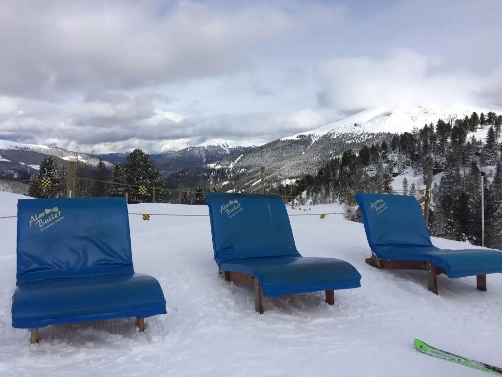 Na vrhu ob sedežnicah so nameščeni ležalniki, veliki in udobni ter idealni za hiter počitek in kanček martinčkanja. Ob našem obisku je sonček sicer štrajkal, zato smo jih preizkusili samo za hiter prigrizek.