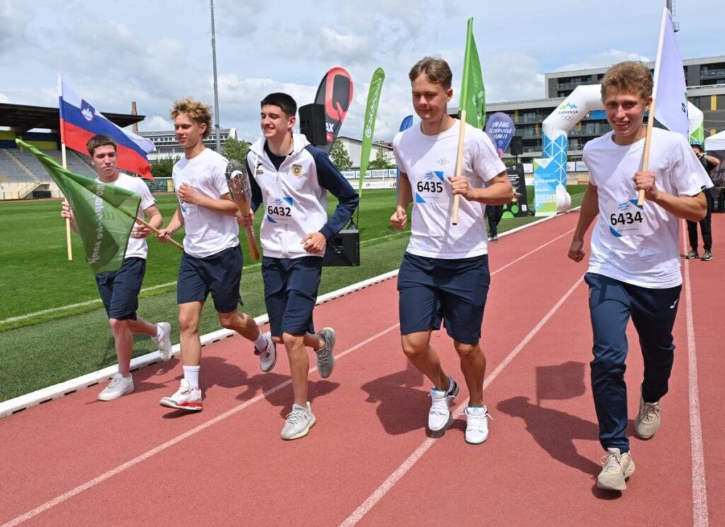Na stadionu je najprej jekleno povezovalko Slovenije po atletski stezi ponesel kapetan mladinske reprezentance Slovenije v rokometu Lun Ključanin, kasneje pa so si sledili košarkarji KK Kansai Heliosa, nogometaši kategorije U19 NK Domžale, člani kluba borilnih veščin KBV Domžale, plesno navijaške skupine Leaders, atleti Domžal ter seniorja karateist Darko Flis in maratonec Boris Vilič.