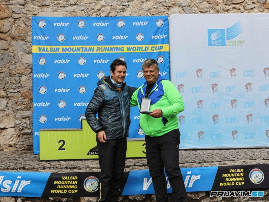 Dušan Papež, podpredsednik AZS, je iz rok Jonathana Wyatta prejel spominsko medaljo Svetovne zveze za gorske teke ob 25-letnici svetovnega pokala.