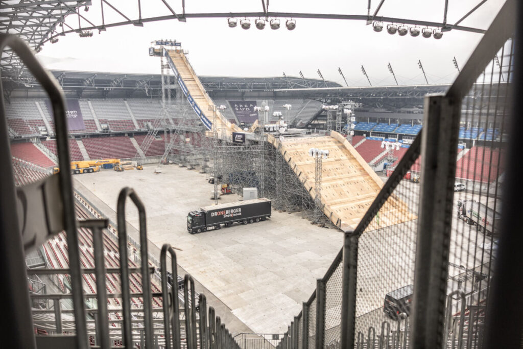 Tretji največji nogometni objekt pri naših severnih sosedih, ki je jeseni gostil nogometno Ligo prvakov (domače tekme so ob Vrbskem jezeru igrali nogometaši graškega Sturma), je že nared za predstave najboljših smučarjev in deskarjev prostega sloga. 45-metrsko zaletišče umetne konstrukcije seže 15 metrov nad najvišjo točko stadiona, tako da je obiskovalcem – vsak dan jih v finalu pričakujejo do 20.000 – pod skakalnico, v parterju in na tribunah zagotovljeno prvovrstno športno in glasbeno doživetje. »Vsekakor bo tako. Gre za ustrezno umeščeno umetno konstrukcijo, na kateri je bila že prva tekma sezone svetovnega pokala v švicarskem Churu. Tudi za snežno podlago na doskočišču me ne skrbi, zanjo je poskrbela izkušena ekipa Schneesterna. Kulisa je prava, smučarji in deskarji vedo, kaj lahko pričakujejo. Obeta se nam pravi big air spektakel,« je prepričan Bohinjec Matevž Pristavec, ki je na avstrijskem Koroškem v vlogi trenerja nemških deskarjev prostega sloga, ki nastopajo v t. i. park disciplinah.